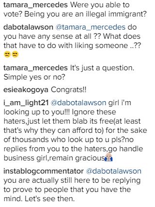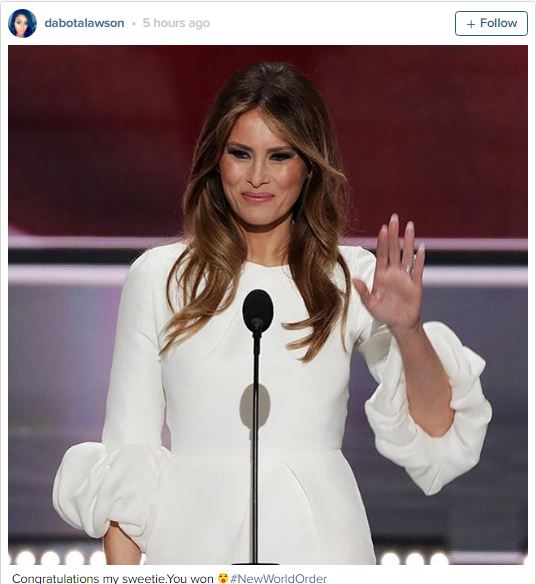 Former beauty queen, Dabota Lawson has taken to Instagram to congratulate her “sweetie” – Melania Trump, over her husband’s victory in the 2016 U.S Presidential Poll.